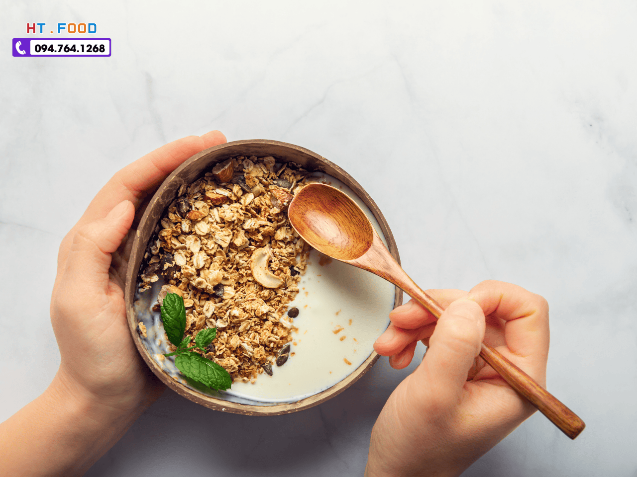 Nếu bạn đang tìm một địa chỉ uy tín để mua granola vừa ngon vừa đảm bảo chất lượng, HTFood chính là lựa chọn đáng tham khảo. Bạn có thể dễ dàng đặt hàng online, giao tận nơi hoặc liên hệ trực tiếp qua SĐT/Zalo: 094.764.1268 để được tư vấn chi tiết. Đây là cách giúp bạn yên tâm hơn khi chọn granola cho chế độ ăn uống lành mạnh của mình và gia đình.